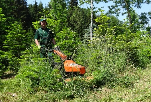 Auch im Sommer sind wir zeitweilig mit unseren Christbäumen beschäftigt. Dazu gehört das Ausmähen zwischen den Reihen sowie das Austreten der kleinen Pflanzen in den Reihen. Genauso werden auch kleine Korrekturen an den Bäumen mit der Gartenschere vorgenommen.